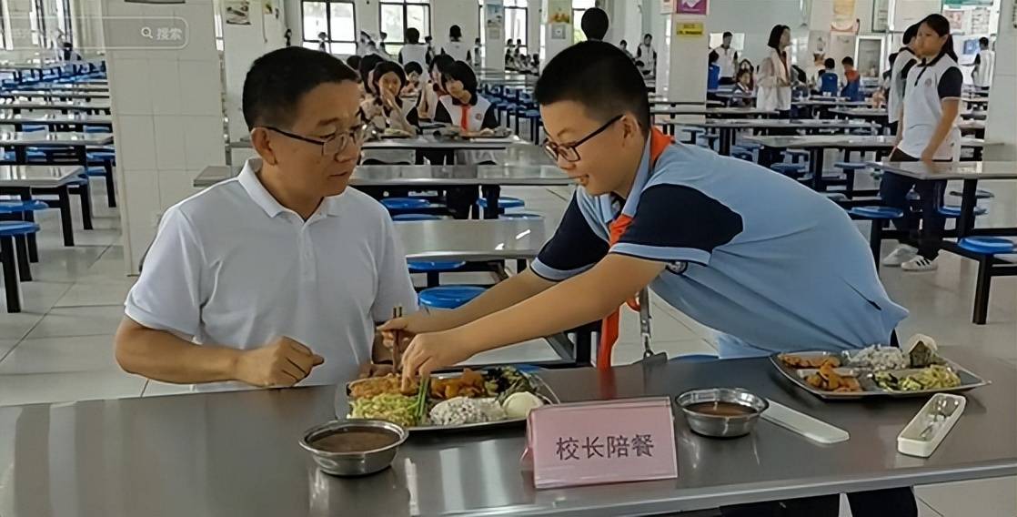 为了让家长放心,他坚持校长陪餐,和学生吃一样的饭,还陪学生们玩梗、聊游戏等,是一个很接地气的校长。