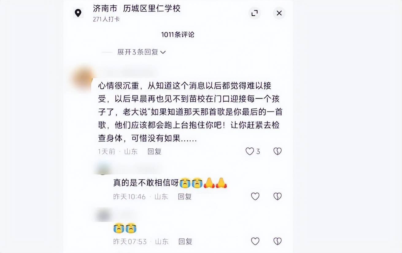 他的家人发布讣告后,很多家长都很难过,还有人留言,表示以后在校门口都看不到这位可敬可爱的校长了。